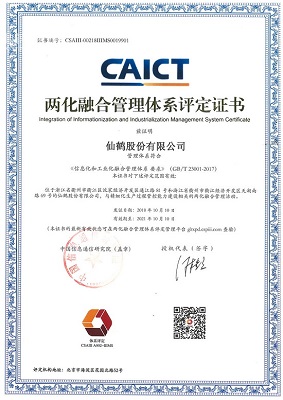 2018-10-10,公司榮獲中國信息通信研究院頒發的【兩化融合管理體系評定證書】
